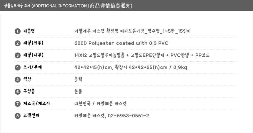 - 교환 시 : 반송비 + 재발송비 = 6,000원 - 반품 시 : 반송비 = 3,000원(무료 배송은 초도 배송비 포함 6,000원) |