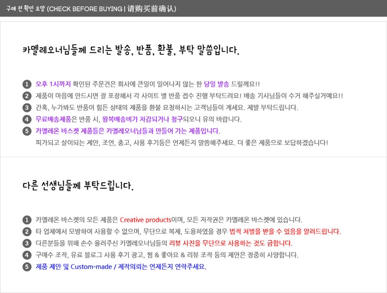 - 고객 변심에 의한 교환 및 반품 시 발생되는 배송비는 고객님 부담입니다.